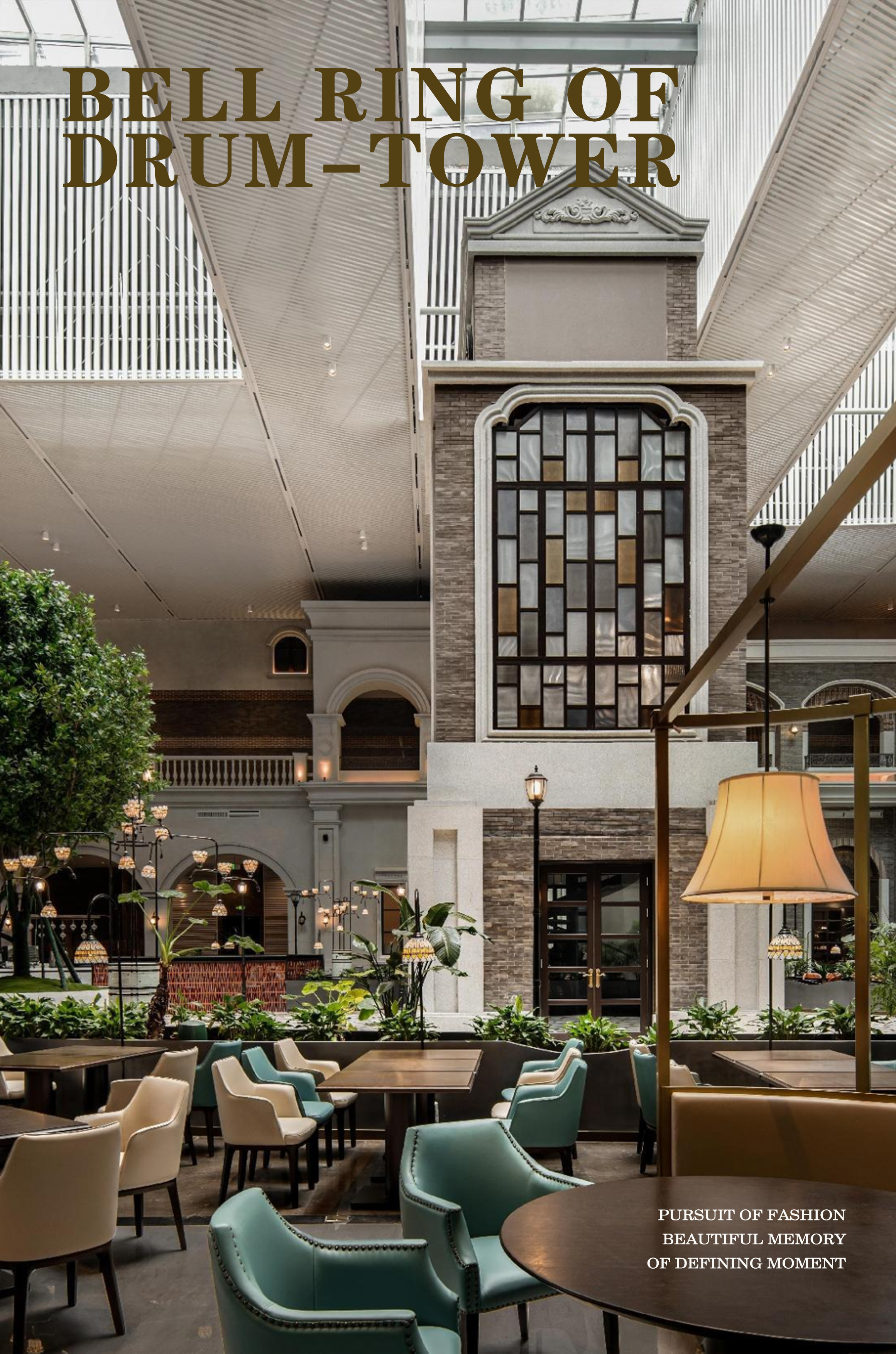 鐘樓做為民國(guó)時(shí)期市中心的一個(gè)重要地標(biāo),被運(yùn)用到共享大堂的中心廣場(chǎng)位置,廣場(chǎng)的設(shè)計(jì)是民國(guó)時(shí)代的城市建設(shè)縮影,共享大堂做為施柏閣大觀酒店與皇冠酒店的大堂吧及全日餐使用,立面上使用軟磁材料,塑造民國(guó)風(fēng)立面,打造民國(guó)街區(qū),伴隨著悠悠的鐘聲將人民帶回那個(gè)激蕩而浪漫的年代。