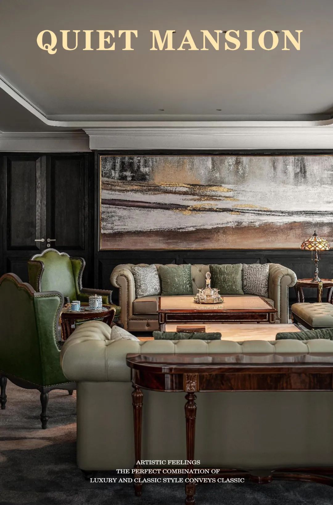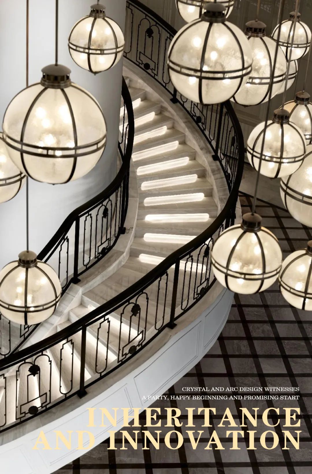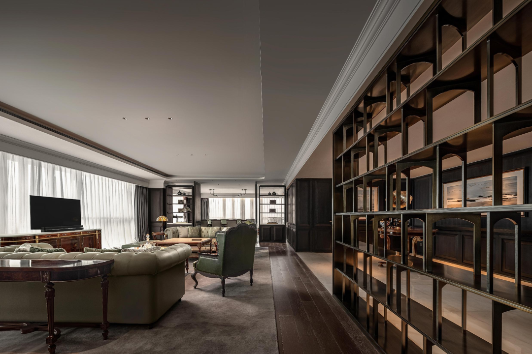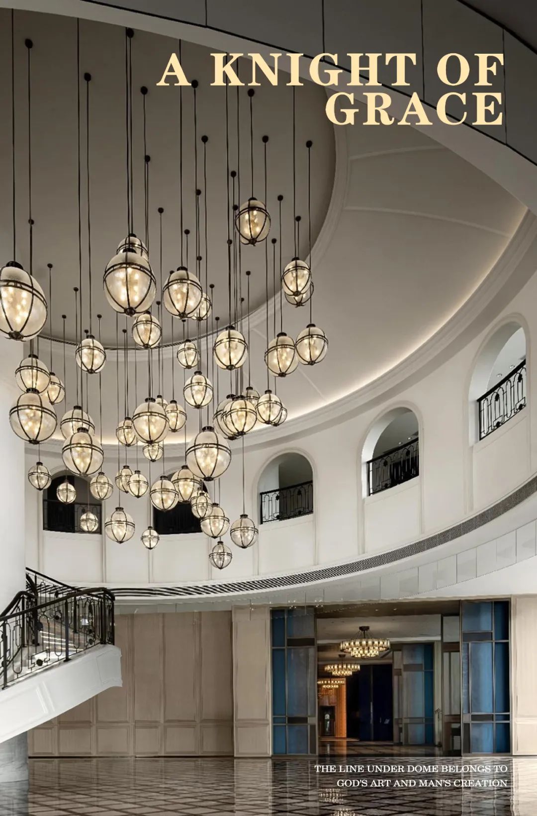 進(jìn)入藝術(shù)大堂,優(yōu)雅的選擇樓梯,精致的西式線條搭配棋盤式的石材鋪貼,優(yōu)美的穹頂下,復(fù)古而不失時(shí)尚的藝術(shù)吊燈,周圍環(huán)繞著是極具序列感的拱窗,每一個(gè)元素的運(yùn)用都透露著深深的時(shí)代的烙印。