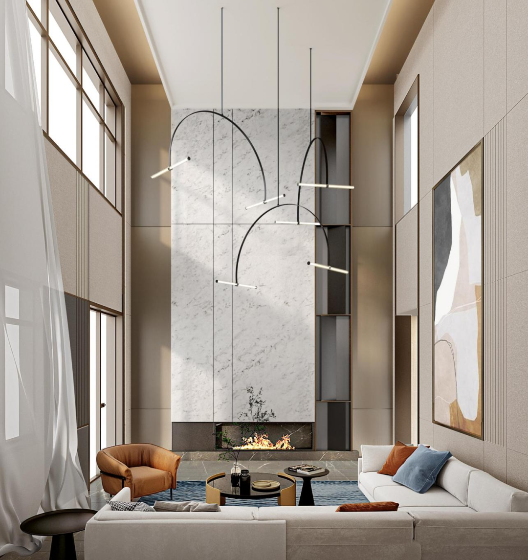運(yùn)用不同類(lèi)型的線(xiàn)條,在空間設(shè)計(jì)中創(chuàng)造出不同的情緒和感覺(jué),讓人們產(chǎn)生時(shí)光流轉(zhuǎn)和未來(lái)感。直線(xiàn)可以傳達(dá)穩(wěn)定、堅(jiān)實(shí)的感覺(jué),豎直線(xiàn)可以呈現(xiàn)向上、飛躍的動(dòng)態(tài),曲線(xiàn)則創(chuàng)造出動(dòng)感和旋轉(zhuǎn)的效果。線(xiàn)條的運(yùn)用為空間注入變化與情緒,讓人們?cè)谄渲懈惺艿綍r(shí)光流轉(zhuǎn)和未來(lái)的氛圍。