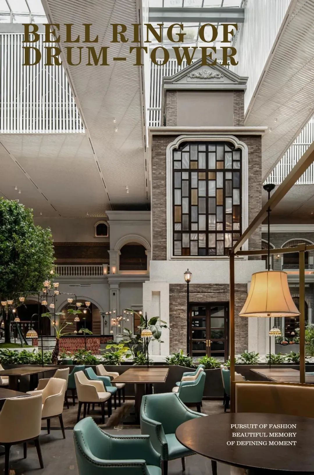 富有時(shí)代感彩色玻璃序列組成的三進(jìn)院空間,這里的設(shè)計(jì)呼應(yīng)中國傳統(tǒng)宅邸院落式布局的設(shè)計(jì)手法,層層遞進(jìn)后那復(fù)古的時(shí)鐘又再一次提醒人們這里是“民國”。