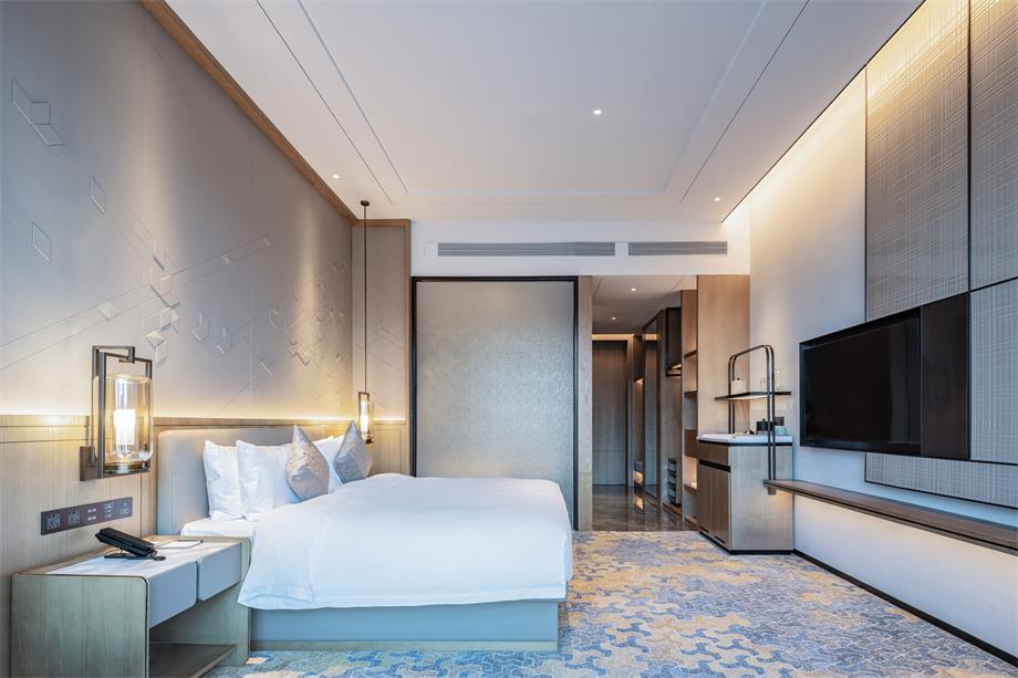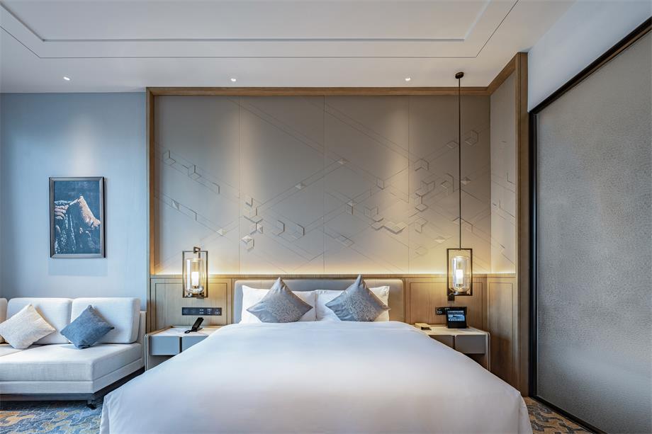 The decoration materials and furniture in the guest room are mainly made of wood. They are well matched with modern metal, fabric and art glass. From the overall decorative effect, the color is elegant and quiet, not only retaining the natural texture of the material but also reflecting local characteristics of the decoration. A comfortable and relaxing sleeping space is provided for guests.