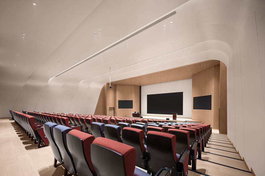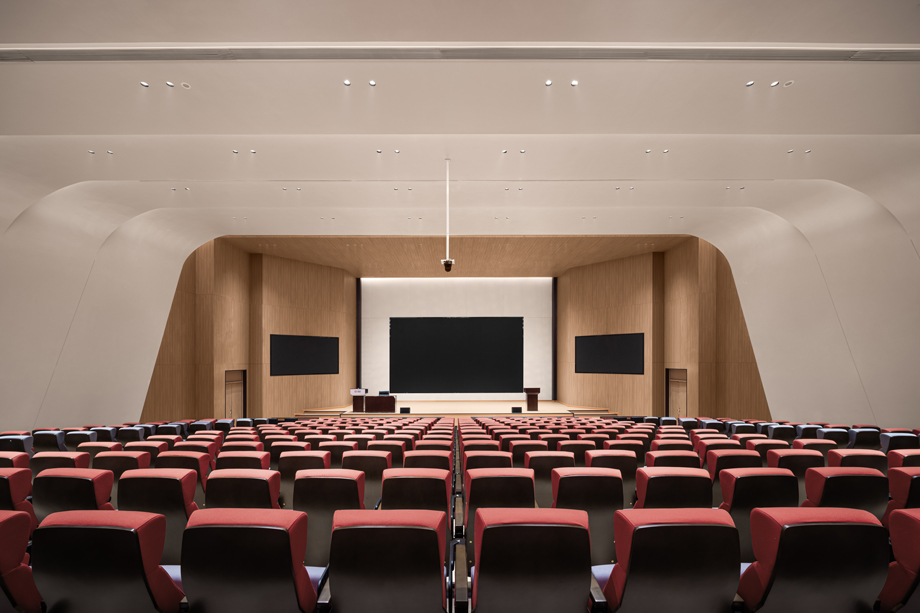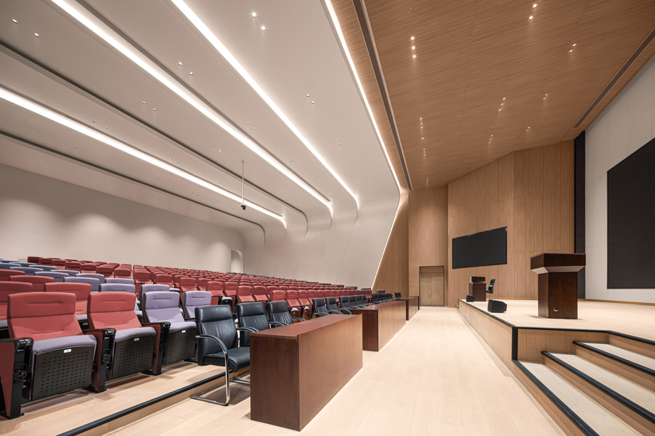 階梯教室的設(shè)計(jì)簡(jiǎn)潔而溫暖,展現(xiàn)出大氣而不失精致的設(shè)計(jì)感,兼顧了對(duì)細(xì)節(jié)的精準(zhǔn)把控。地面鋪設(shè)了專業(yè)地板,以減少噪音反射和回聲,有效緩解聲波的反射,具有良好的吸聲效果及舒適的腳感。