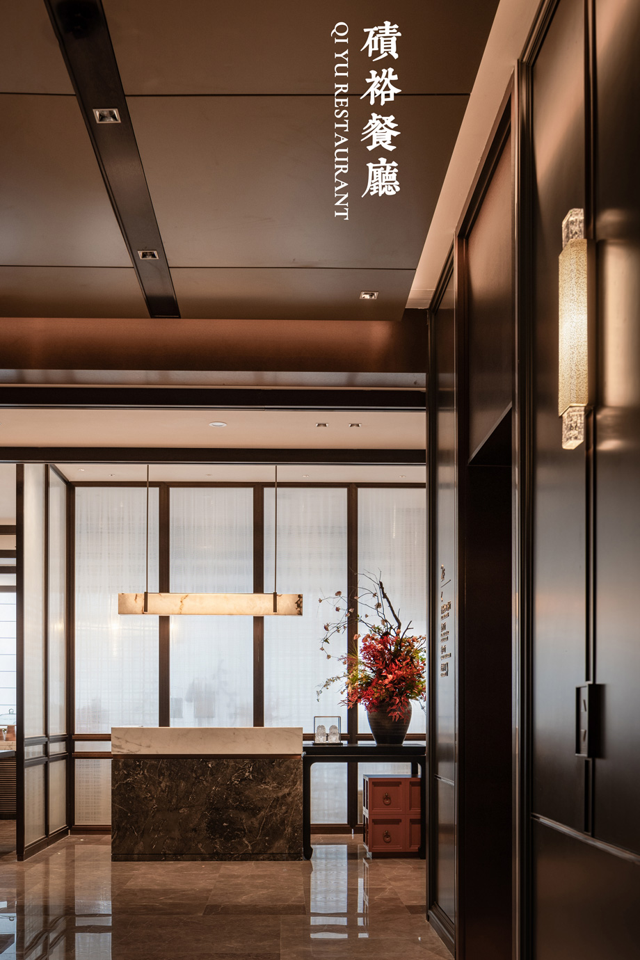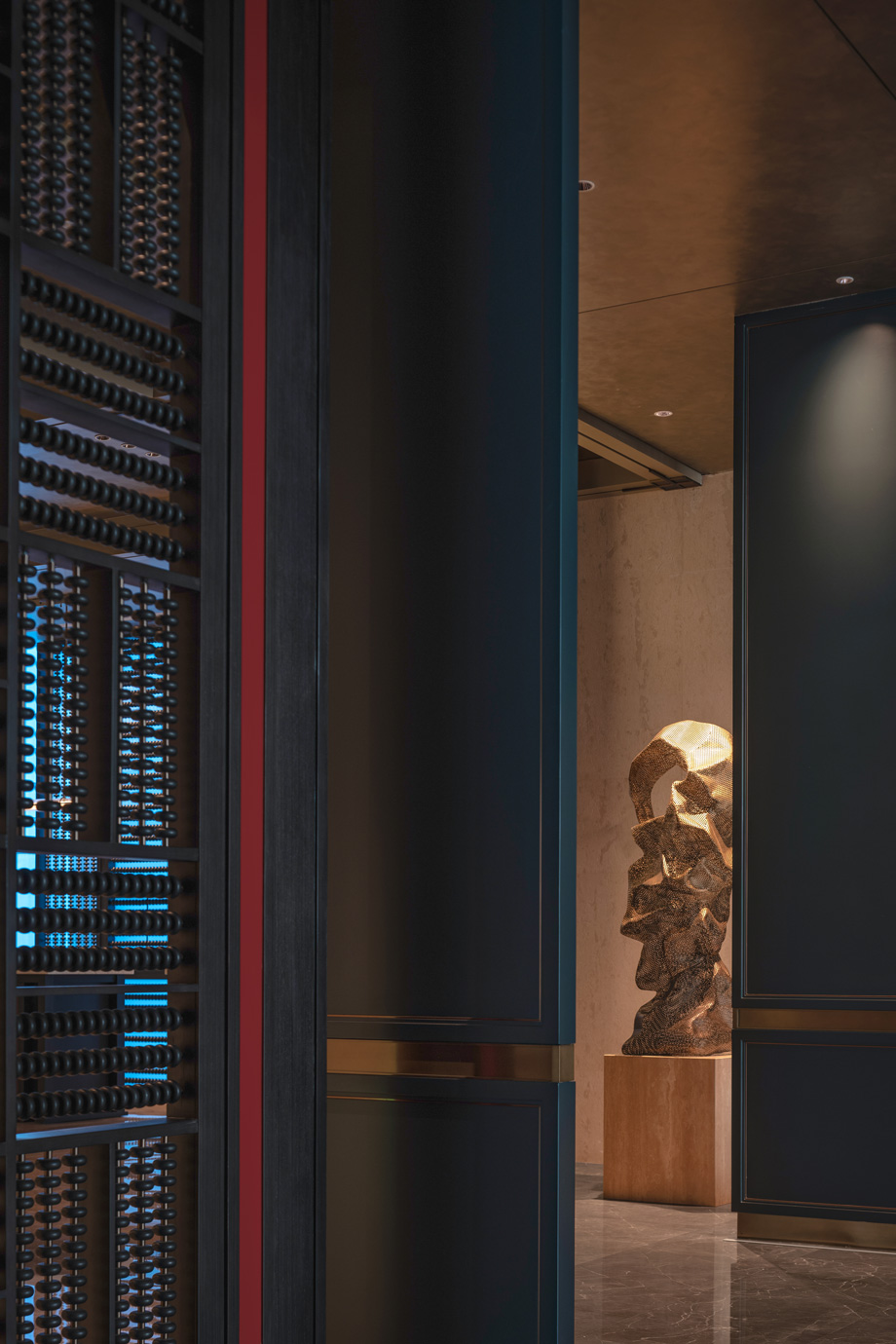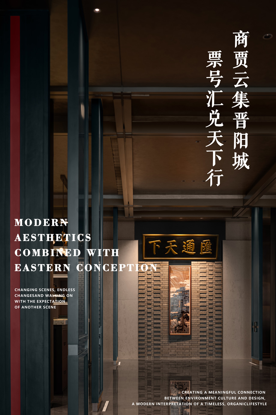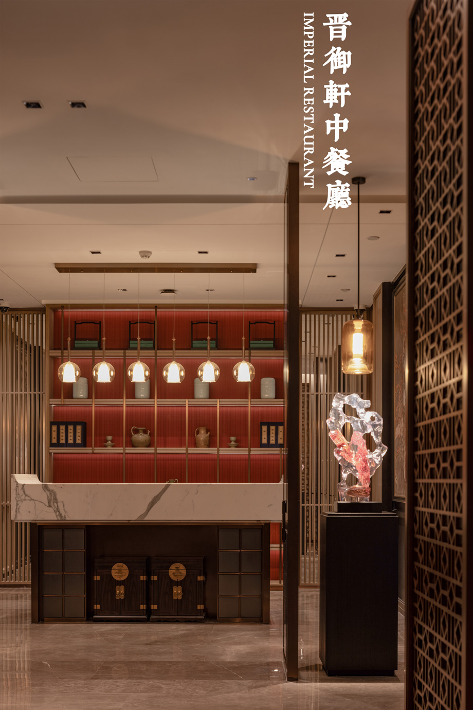 以建筑、木格漆器為元素,將山西著名的會館建筑擺件融入到建筑空間,致敬會館文化。