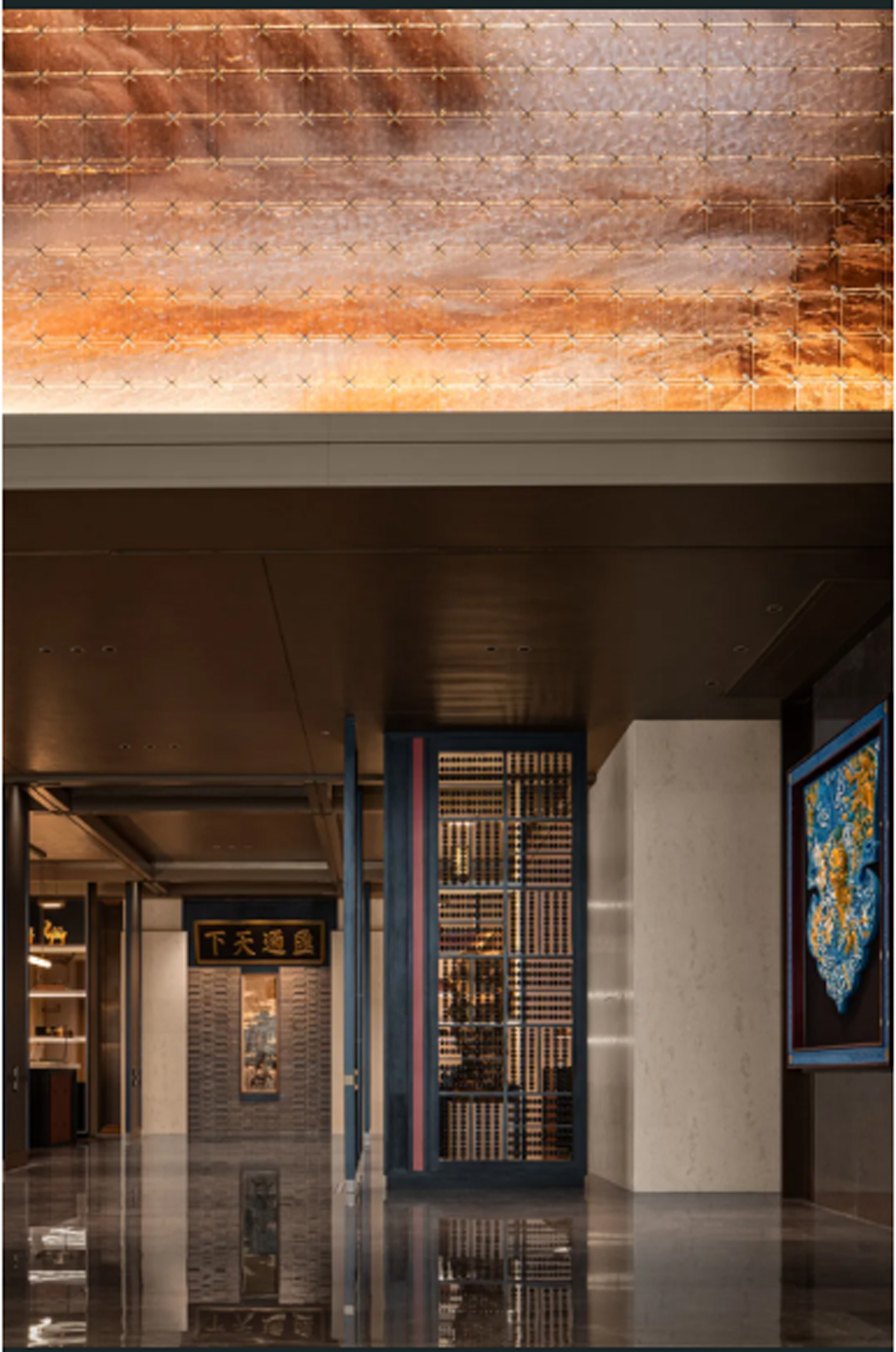 在晉澤昌文旅酒店的接待空間,江河設(shè)計JHD以票號賬房文化為主題,巧妙融合長治堆錦技藝、印信文化,精心打造出一個充滿商道文化的接待空間。