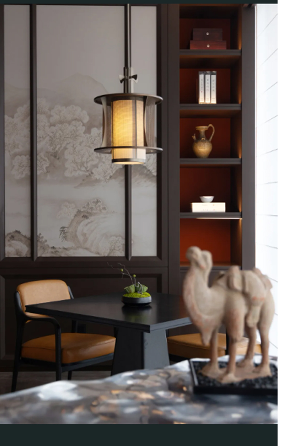 “Appreciate the charm and fragrance of ink at a tranquil environment”. JHD integrates history and modernity perfectly in design. It reflects the memory of history in the space eternally with a lamp, a painting, etc.