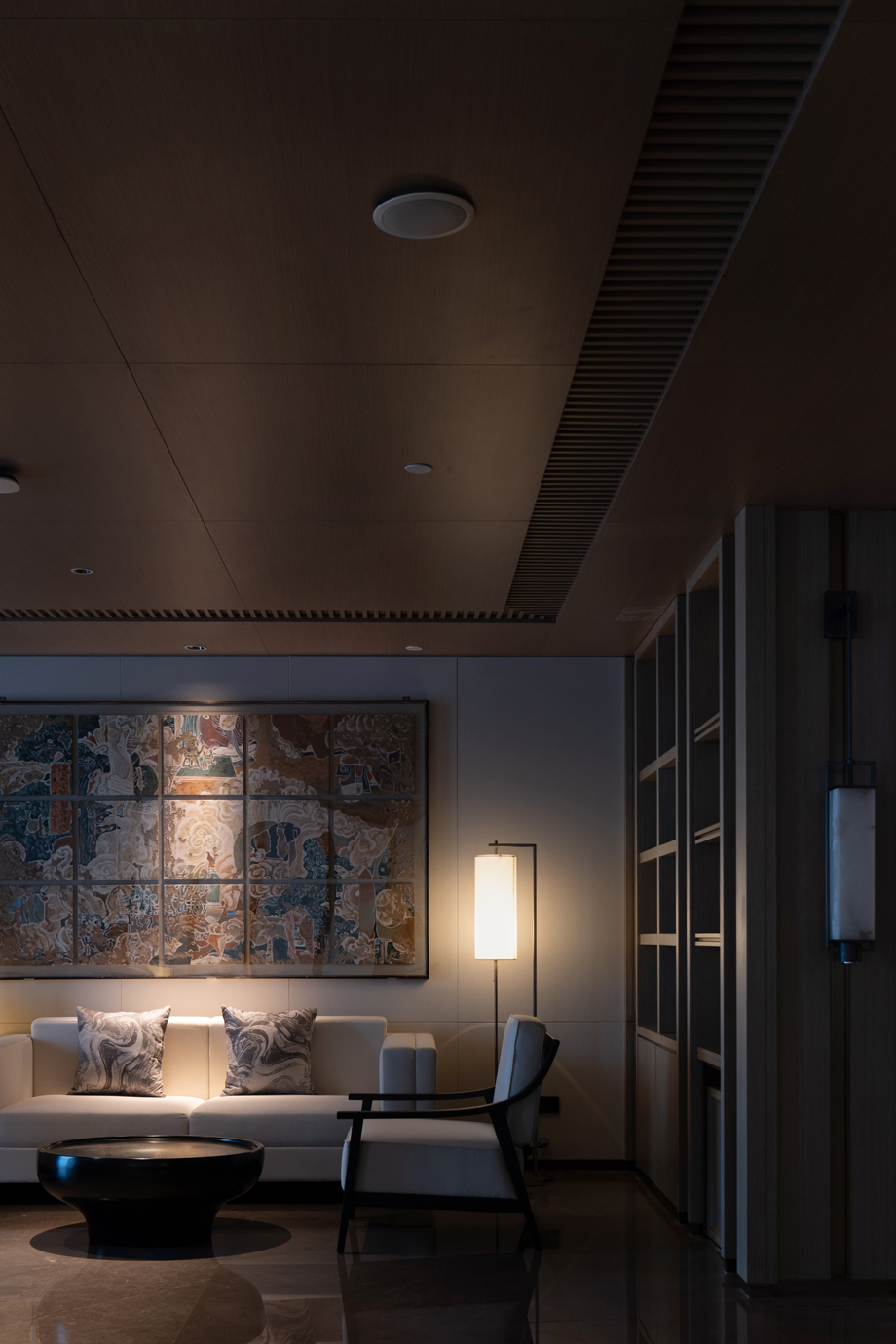 “夜闌人靜處,猶聞墨香浮”。設(shè)計將歷史與現(xiàn)代完美融合,一盞燈、一幅畫,讓歷史的印記,在這片空間中永恒延續(xù)。