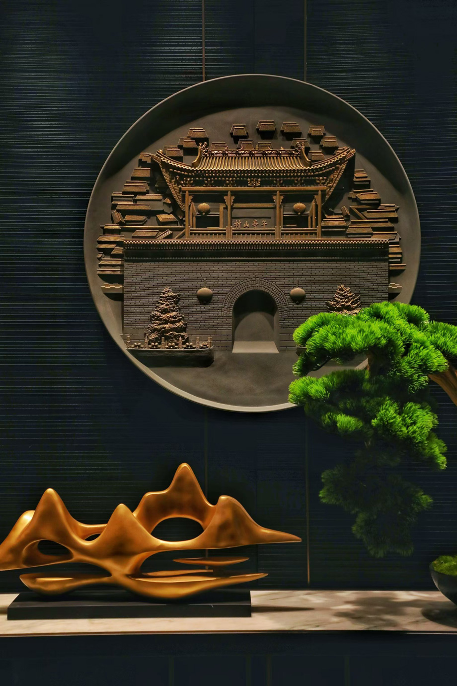 設(shè)計以有“中國脊梁”之稱的太行山為概念演變,引入高聳山形裝置藝術(shù)品,展示其巍峨氣勢。