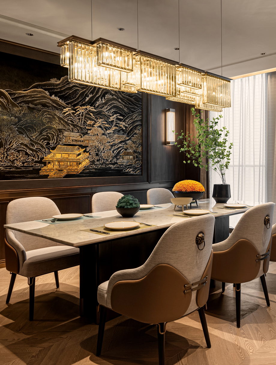 中庸之為德也,其至矣乎”-淡雅的水墨畫,色調(diào)柔和線條流暢,家具配飾,質(zhì)地溫潤色澤沉穩(wěn)。每一處細(xì)節(jié)都恰到好處,不張揚,不浮夸,讓人在靜謐中感受到內(nèi)心的平衡與寧靜。