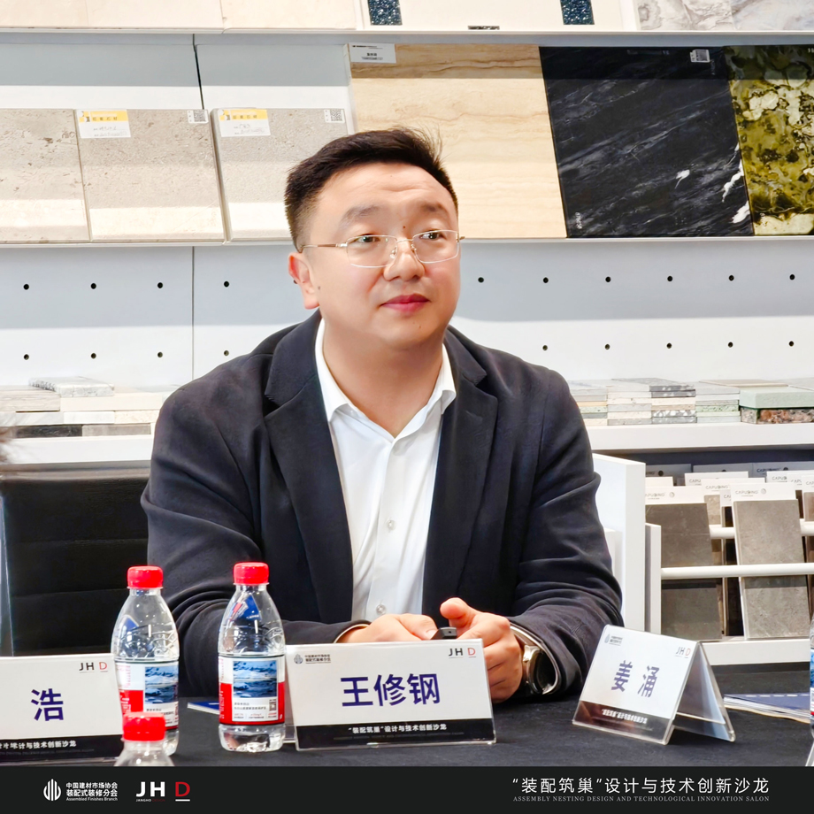 總裁王修鋼致歡迎詞表示:江河設(shè)計(jì)JHD作為行業(yè)領(lǐng)軍企業(yè),始終堅(jiān)持 “設(shè)計(jì)驅(qū)動(dòng)工業(yè)化” 的發(fā)展理念,近年來在裝配式裝修領(lǐng)域構(gòu)建了 “全專業(yè)協(xié)同設(shè)計(jì) - 模塊化部品研發(fā) - 數(shù)字化施工管理” 的全鏈條服務(wù)體系。談及行業(yè)未來,總裁王修鋼強(qiáng)調(diào):“裝配式裝修不僅是技術(shù)的革新,更是對(duì)人居體驗(yàn)的重新定義。我們期待與行業(yè)同仁一道,以設(shè)計(jì)創(chuàng)新和技術(shù)突破賦予空間溫度,共同書寫中國裝配式裝修的‘江河樣本’”。
