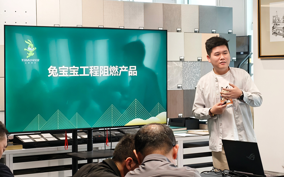 德華兔寶寶工裝運(yùn)營公司北方大區(qū)經(jīng)理施海峰,全面介紹兔寶寶發(fā)展歷程,不斷推出更高標(biāo)準(zhǔn)的環(huán)保產(chǎn)品,以推進(jìn)行業(yè)綠色進(jìn)程為己任,打造健康家居新生活。同時(shí)兔寶寶品牌被列入《政府采購綠色清單》,是政府認(rèn)可的綠色采購品牌,同時(shí)也是APEC峰會(huì)、世博會(huì)、G20峰會(huì)、聯(lián)合國世界地理信息大會(huì)等重大工程指定材料。并對(duì)無機(jī)阻燃飾面板、蜂窩鋁阻燃飾面板、難燃生態(tài)免漆板等多個(gè)核心產(chǎn)品的性能進(jìn)行介紹,兔寶寶用硬核科技證明:裝配式裝修不僅能“裝得快”,更能“裝得美、裝得穩(wěn)”。