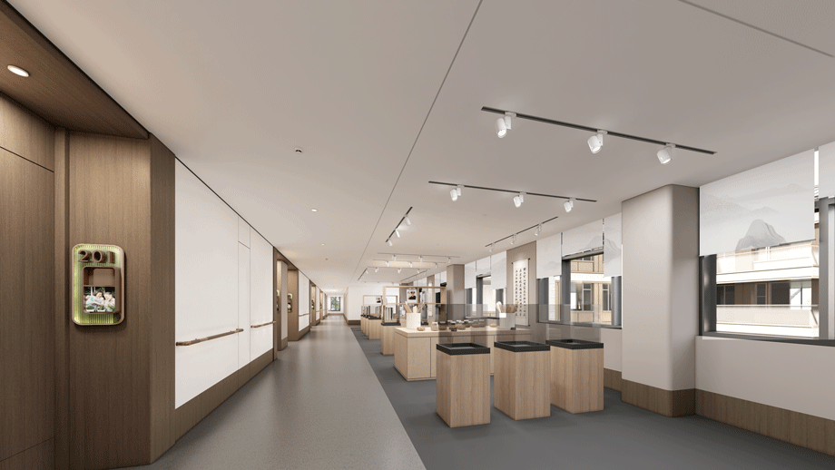 情景式洄游路線。利用走道及多功能餐廳設(shè)計可供老年人游走的濟南風(fēng)情路線,并在路線旁預(yù)留休息空間,有助于失智癥老人改善情緒。