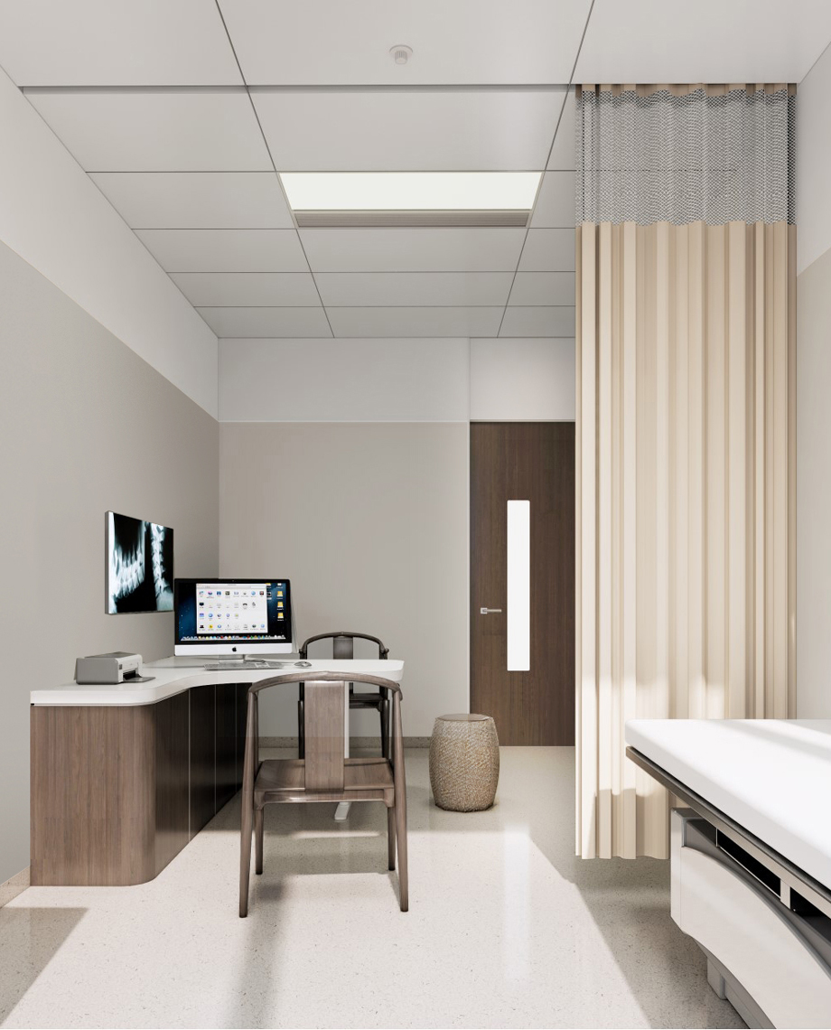 候診空間在康養(yǎng)空間環(huán)境中必不可少,在設(shè)計上,候診空間有一級候診和二級候診等空間。 候診空間在整個空間中起到了承上啟下的作用。