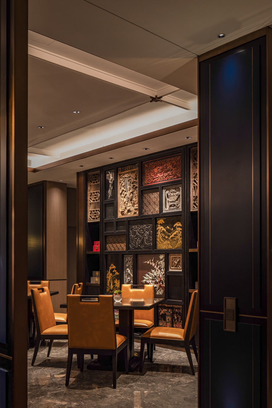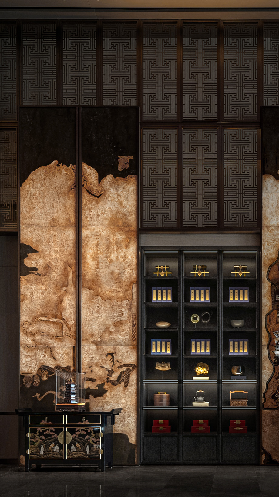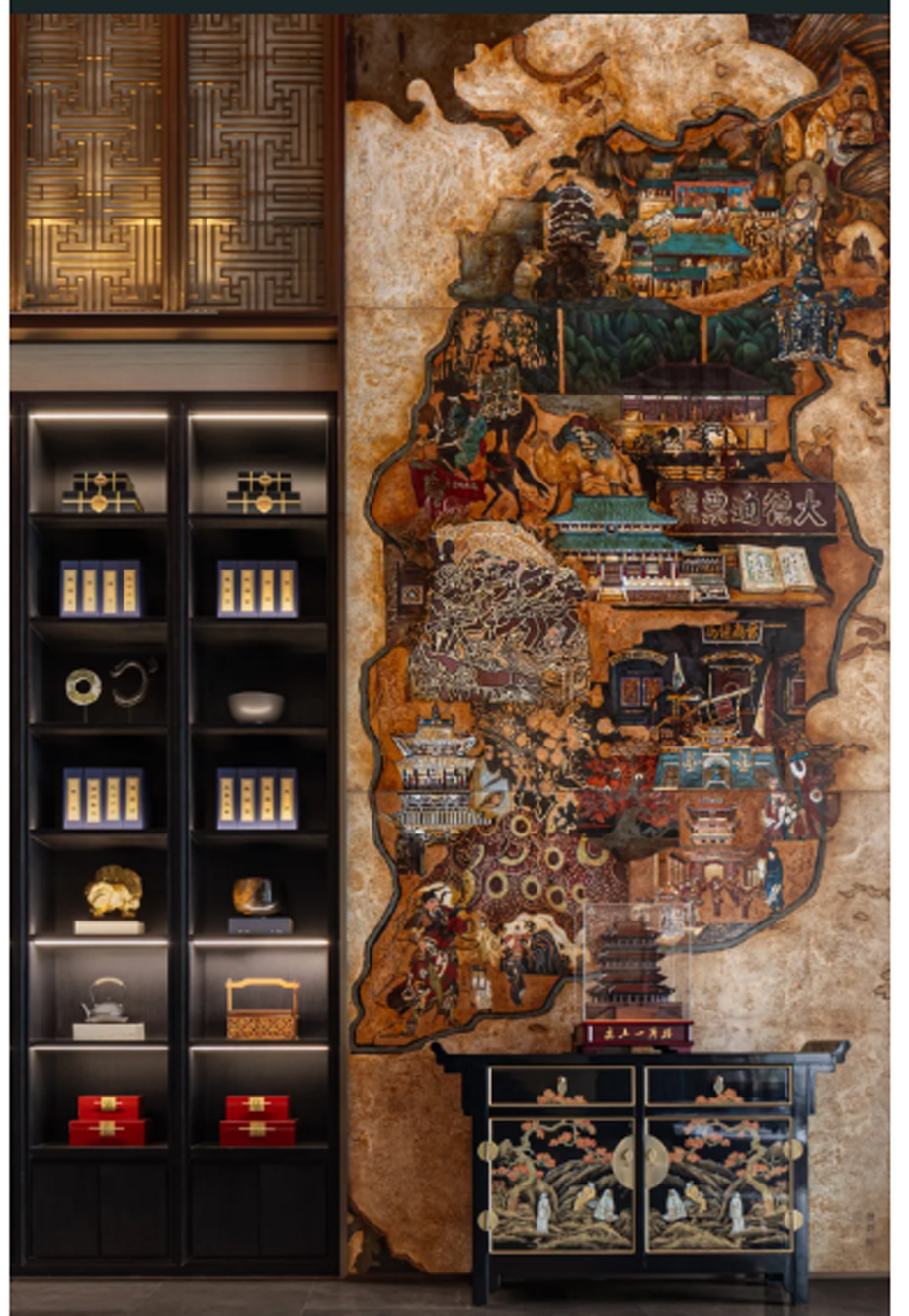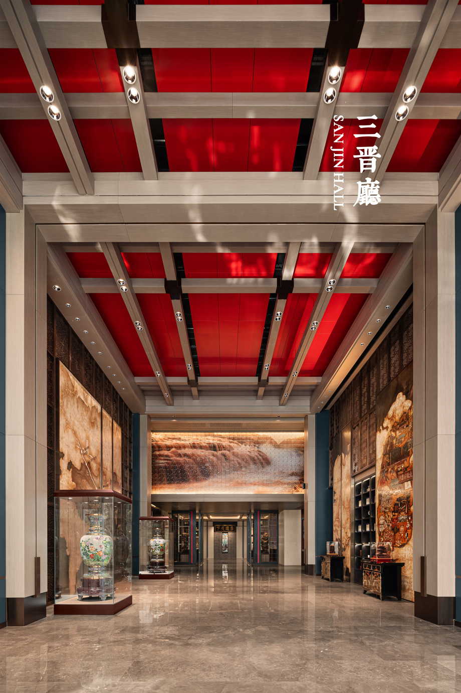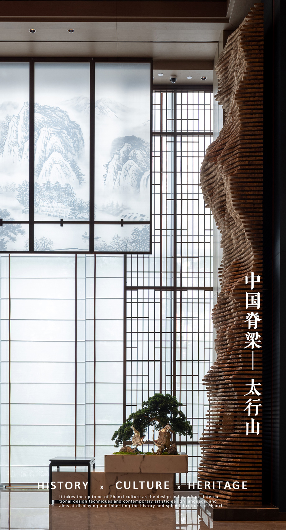 將非遺從 “展品” 轉(zhuǎn)化為空間組成部分 —— 大堂以介休琉璃復(fù)刻麒麟八寶紋樣作照壁,客房門楣用推光漆繪制晉商院落剪影,中餐廳隔斷采用堆錦工藝呈現(xiàn)晉商飲食文化,形成 “一步一非遺,一景一敘事” 的沉浸式體驗(yàn),實(shí)現(xiàn)傳統(tǒng)技藝現(xiàn)代化轉(zhuǎn)譯的高階表達(dá)。