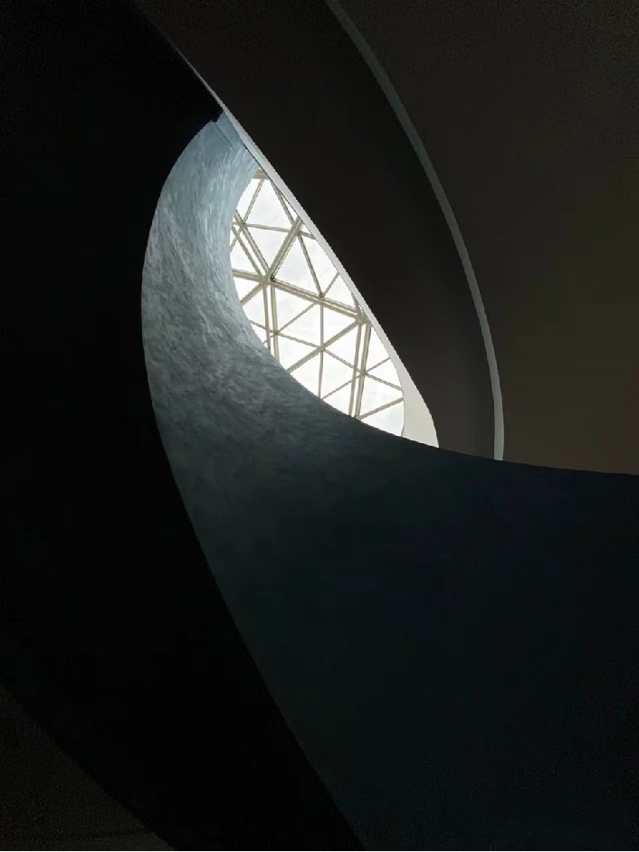▲ Check in 等候區(qū)畫廊一角及通往行政酒廊旋轉(zhuǎn)樓梯