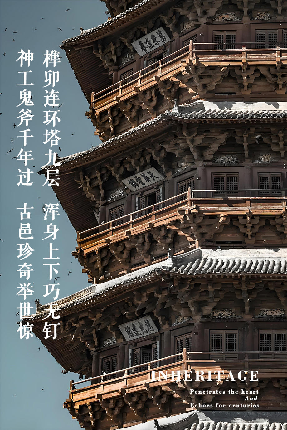 The Yingxian Wooden Pagoda, a millennium ancient building, is typically a masterpiece of ancient Chinese architectural art and sets a typical example. It has won the pride and honor of the Chinese nation with its unique structural design, exquisite craftsmanship, profound cultural heritage, and excellent seismic resistance, and has become a key part and a breathtaking miracle along the history of world architecture.