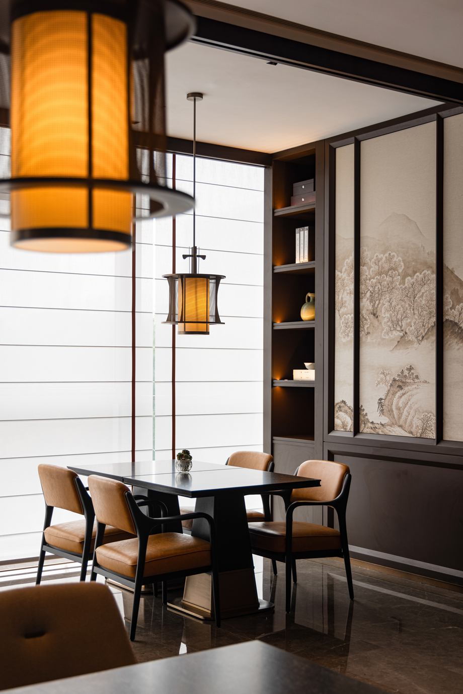 Under the lattice window, guests could fully be immersed in a moment of tranquility in the dining room.