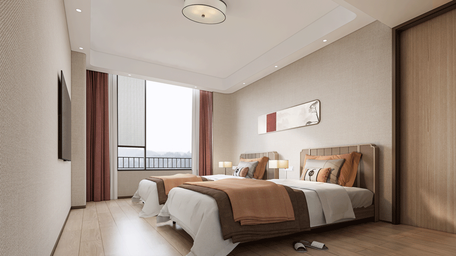 餐廳設(shè)計延升并延續(xù)了“山”元素的新中式風(fēng)格手法,普華而厚重,作為入住后使用率較高的空間,其舒適和便利的程度直接影響老年人的居住體驗。餐廳不僅是為老年人提供日常餐飲的地方,同時在非就餐期間,可對其空間進行復(fù)合化設(shè)計,滿足交流、閱讀、舉辦各種活動等,提高空間利用率。